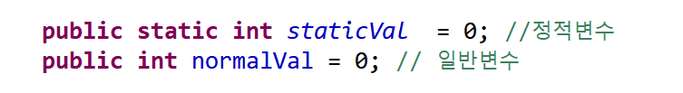 정적변수는 클래스 단위 변수이기에