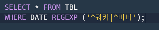REGEXP라는 키워드를 사용해주어야 한다.