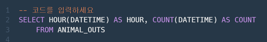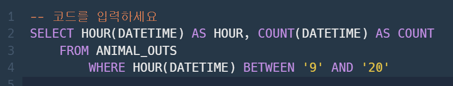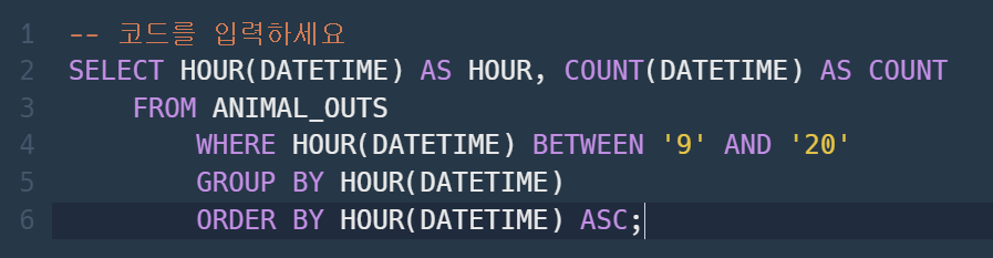 HOUR( )를 통해 시간별로 묶이도록 만들어주었다.
