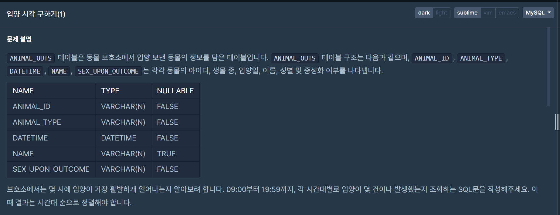 입양 시각 구하기(1)의 문제는 다음과 같다.