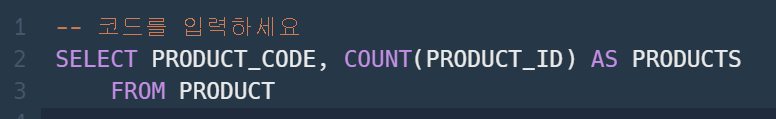 1. PRODUCT_CODE, 상품 갯수 출력