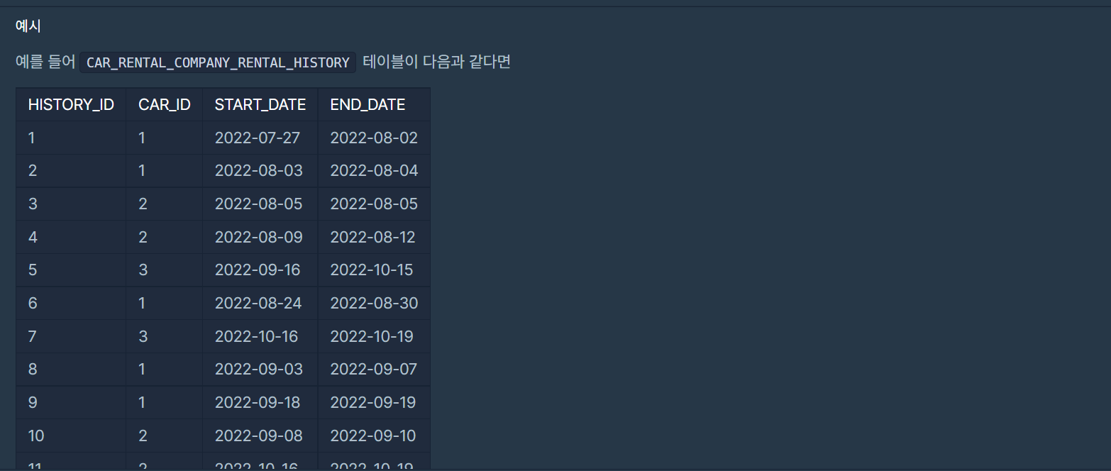 본 쿼리문에도 START_DATE BETWEEN '2022-08-01' AND '2022-10-31'이 존재하며