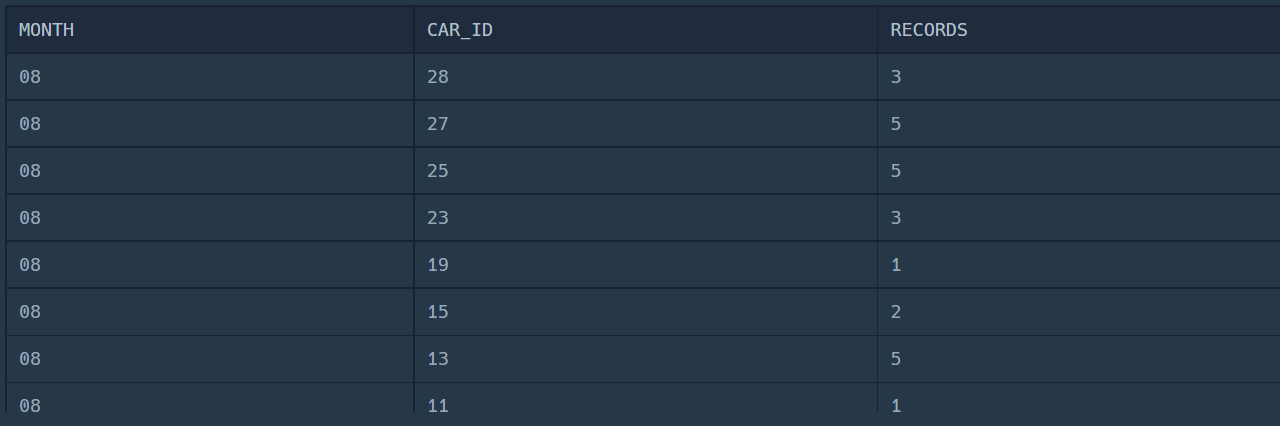 월별, 자동차 ID별로 결과를 묶어주도록 하겠다.