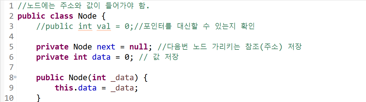 Node는 LinkedList에 객체를 추가, 삭제하면