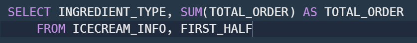 아이스크림 성분에 대한 총 주문량을 출력시키도록 하겠다.