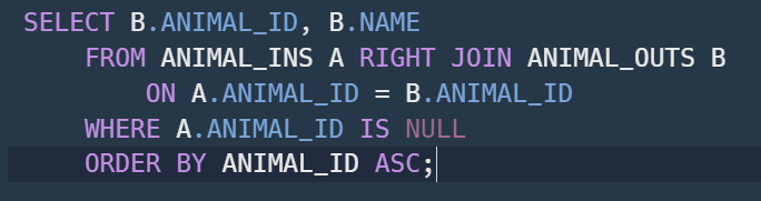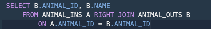 ANIMAL_OUTS 테이블을 B라는 별명으로 지정해주었다.