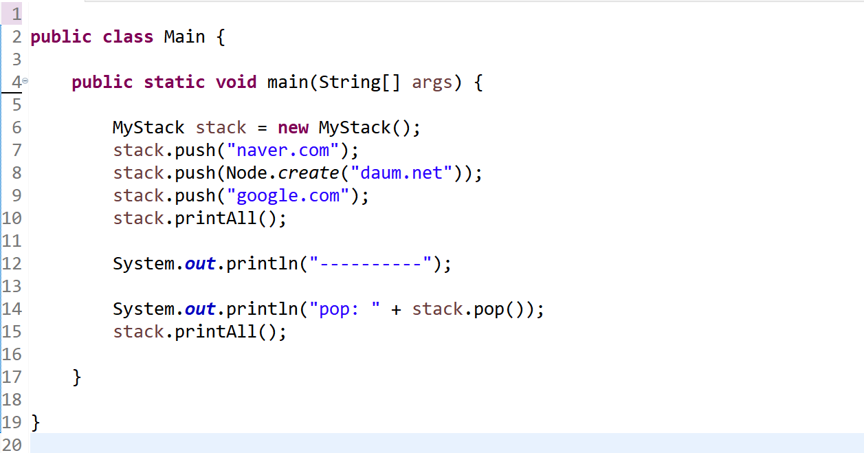 다음은 스택의 기능을 구현할