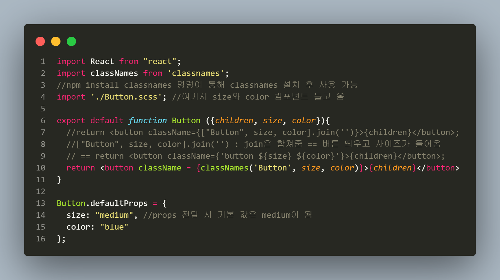 그리고 Button.js 파일에서는
