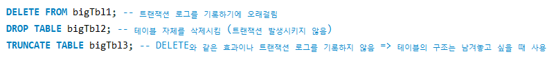 DELETE, DROP, TRUNCATE 비교