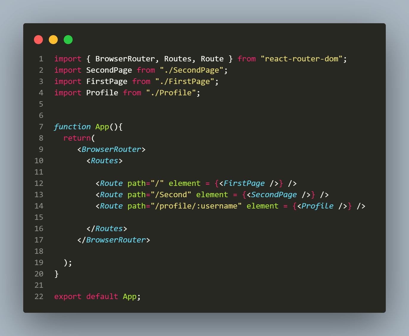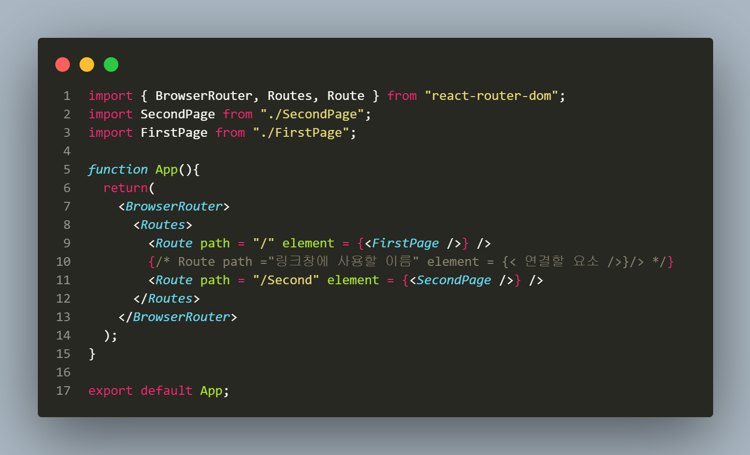 App.js 파일에서 14번째 줄의 지정해둔 path와
