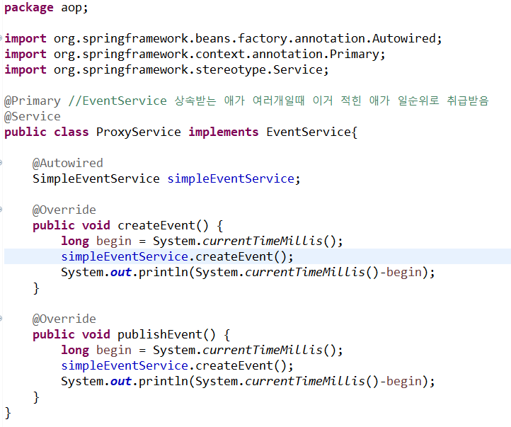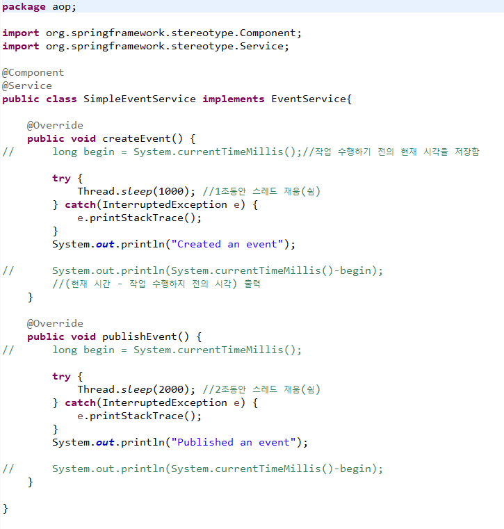 다음과 같이 SimpleEventService.java 파일에서 하던 기능과