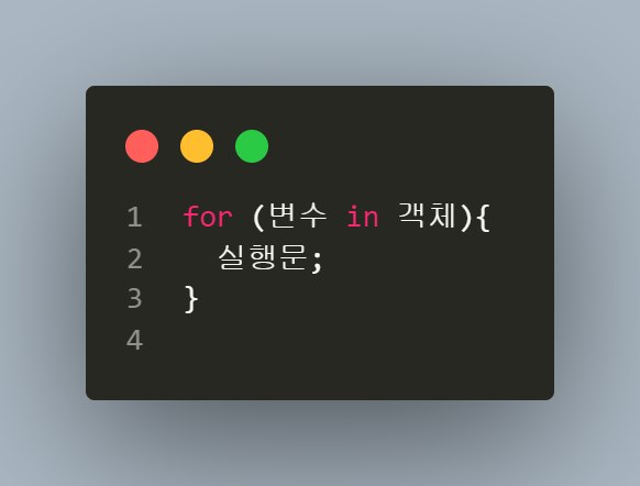 for in은 해당 객체의 모든 열겨할 수 있는 프로퍼티를 순회할 수 있도록 해준다.