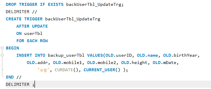 트리거_이벤트: INSERT | UPDATE | DELETE