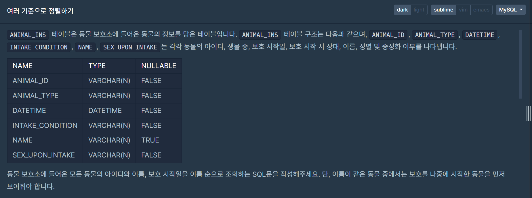 여러 기준으로 정렬하기 문제는 다음과 같다.