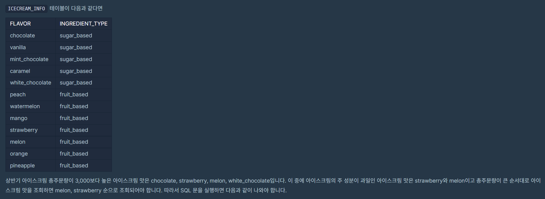 ICECREAM_INFO 테이블의 FLAVOR이 외래키이니