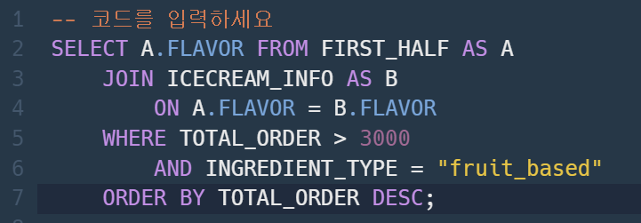 ICECREAM_INFO 테이블은 B로 약칭 지어주겠다.